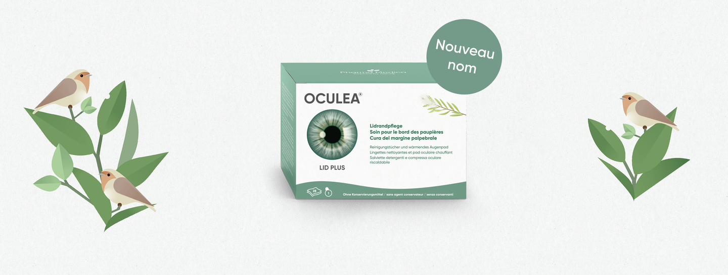 Nous avons le plaisir de vous informer d'un changement important dans notre gamme de produits : À partir de février, OCULEA® BLEPHA PLUS change de nom et sera désormais disponible sous le nom d'OCULEA® LID PLUS.