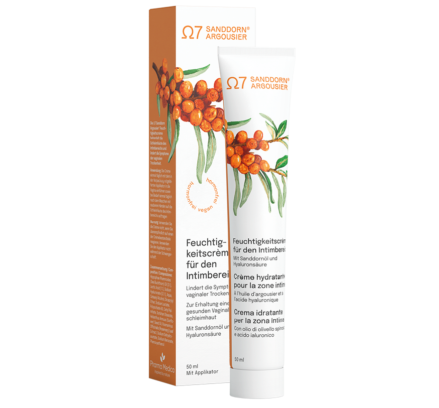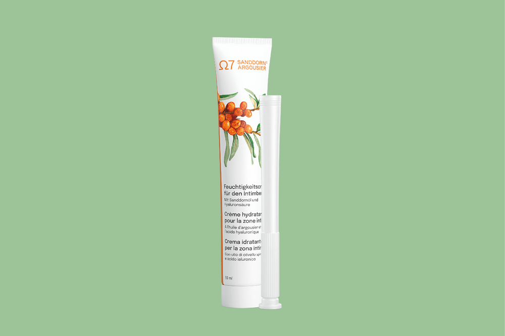 La crème hydratante pour zones intimes Ω7 Sanddorn Argousier® permet de traiter les muqueuses intimes et soulage les symptômes de sécheresse vaginale ; désormais disponible avec applicateur.