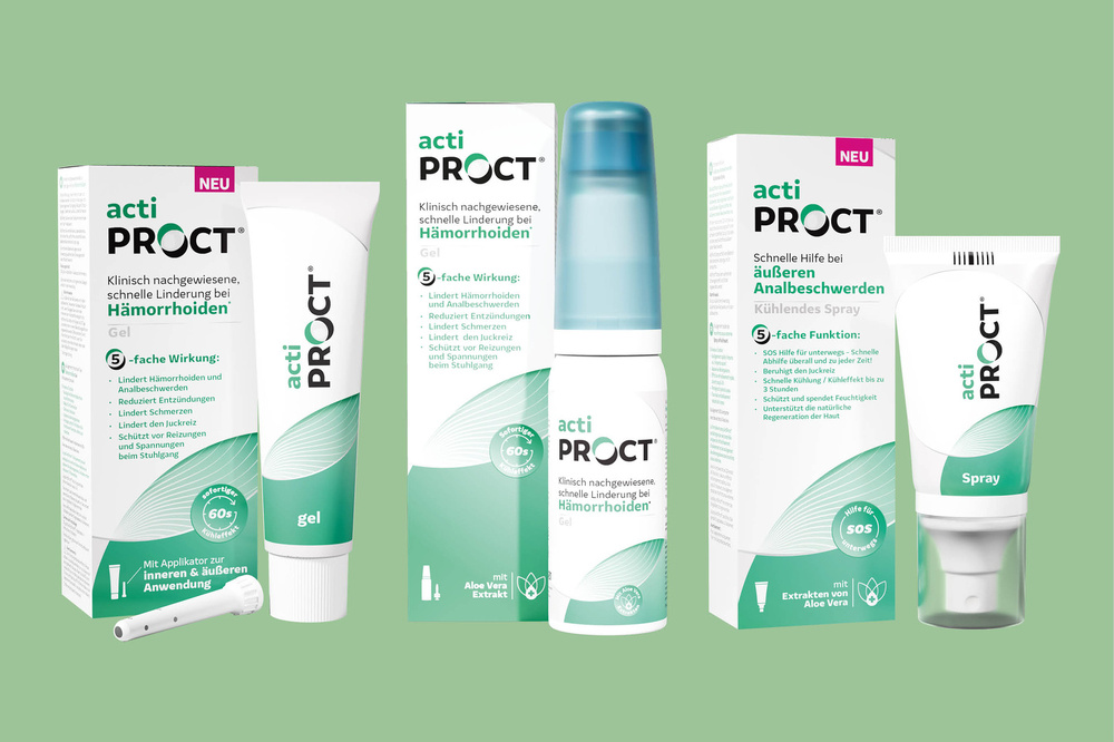 ActiProct® ist eine klinisch geprüfte, schnell wirkende Lösung zur Linderung von Beschwerden im Zusammenhang mit Hämorrhoiden.