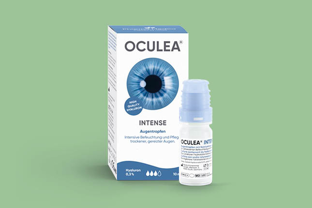OCULEA® INTENSE Augentropfen zeichnen sich durch eine längere Verweildauer im Auge und eine komfortable Anwendungsfrequenz durch hohe Viskosität aus. Sie bilden einen stabilen und besonders lang haftenden Schutzfilm auf der Hornhaut. Dadurch ergibt sich eine langanhaltende Befeuchtung bei stärkeren und chronischen Beschwerden.
