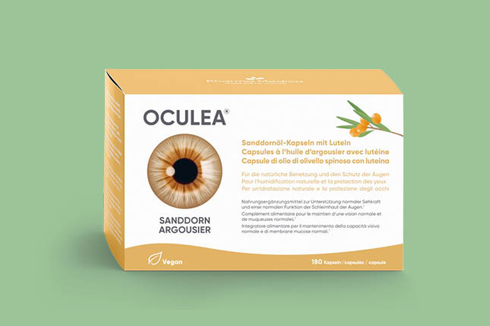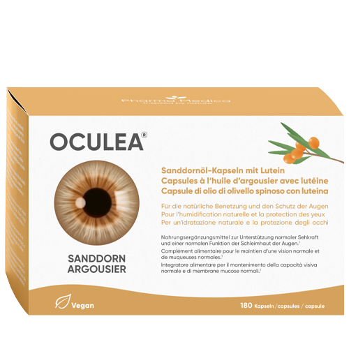 In den OCULEA® SANDDORN Kapseln steckt die ganze Kraft der Natur. Das Nahrungsergänzungsmittel beinhaltet Sanddornöl und Beta-Carotin, eine Quelle für Vitamin A, das zur Erhaltung normaler Sehkraft und normaler Schleimhäute beiträgt, sowie Vitamin E, das die Zellen vor oxidativem Stress schützt.